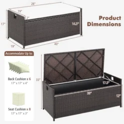 Costway 34 Gallon Patio Wicker Storage Deck Box W/Cushion Off White Backyard