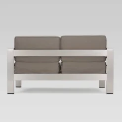 Aviara 5pc Aluminum Chat Set With Fire Pit – Silver/Khaki And Light Gray – Christopher Knight Home