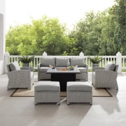 Bradenton 5pc Outdoor Wicker Sectional Set With Fire Table – Crosley