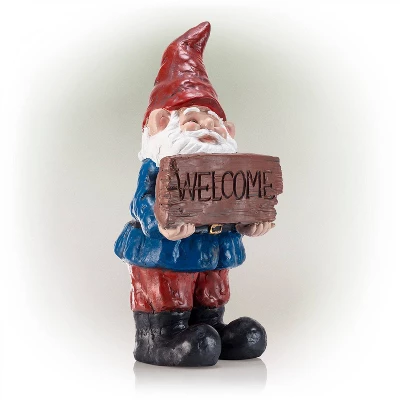 - GARDEN STATUE: Lawn figurine features a brightly colored, friendly garden gnome holding a “Welcome” sign for a fun and warm addition to your front yard, garden, or patio