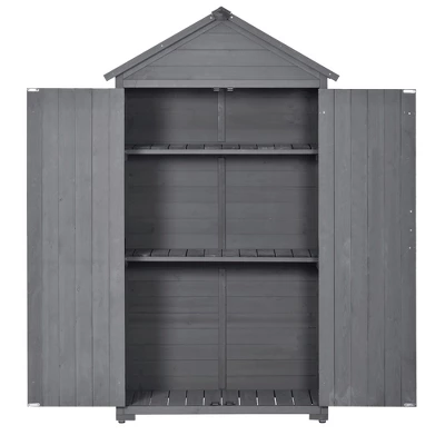 This storage shed is made of solid fir wood construction with a stained coating which ensures a long service lifespan. With 3-tier removable shelves, the tool organizer is ideal for storing different tools and accessories such as watering cans, spades, pots even some long tools, etc.