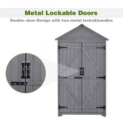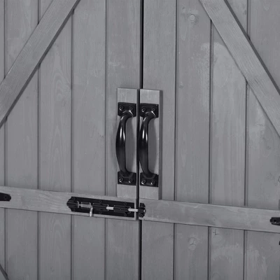 - [Durable Fir Wood Frame] With its sturdy frame, off-the-ground design, and 6 supportive feet, the utility tool shed is enough durable and stable for outdoor using.