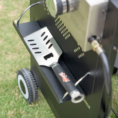 The Grill & Griddle Combo will bring you new experience for your outdoor cooking. Iron cast griddle plate and detachable stainless steel grate included, you can enjoy 2 kinds of happiness once you get this. Great for couples or small families with a total of 171 sq. in. of cooking surface(or 191 sq. in. grilling area). 2 burners have 20,000 BTU output in total. The lid can be also used as wind shield you don’t have to worry about the wind and dust outdoor.