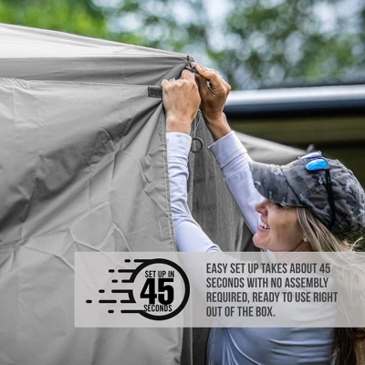- PROTECTIVE SIDES: Built-in wind panels that roll up, down, and zip on the sides; Mesh windows in wind panels can be opened or closed; No-see-um mesh screen and extra-wide skirt to keep bugs out; Ideal for camping, picnics, and sporting events