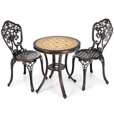 - Delicate & Practical Design: This patio bistro set is decorated with unique pattern adding a sense of elegance to any setting. The spacious tabletop makes the snacks and drinks within reach. Plus, hollowed-out chairs allow water to flow quickly and stay dry for outdoor use.