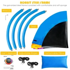 - Super Safety Design: The galvanized steel frame is covered by thick sponge to avoid accidental bumps. Made of PE, the ropes are durable to last for a long time in outdoor weather. And the seat made from thick oxford cloth and PP is wear-resistant. You can install it with one fixed carabiner, two fixed carabiners or one swivel carabiner according to your needs.