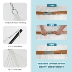 - Details for Durability: The hand-woven ropes stand the test of time while promoting aesthetics. Furthermore, there are multiple countersunk holes on the bamboo wood spreader bars, which are designed to avoid wear and tear on the ropes when swinging. All of these features make the hammock more durable.