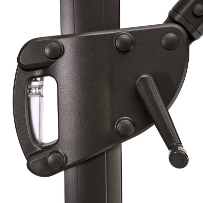 Using large 11.5ft patio upgraded square offset umbrella is a fantastic way to help you enjoy your outdoor room. You can move the pole to any outdoor spot you like with the cantilever design, without worrying about it getting in the way of dining or entertaining. With 100% 240g solution dyed polyester fabric, our patio umbrella provides 10×10 feet of sun protection for vast areas. The UV protective and fade-resistant canopy is spread over 8 ribs with a single wind vent for 500 hours color fastness in the sun that allows for wind and air to be safely “vented” through your umbrella. The lightweight durable Aluminum pole can resist the most of things from the environment throws at it, and the gray coating on the pole gives you a stylish touch feeling. It is easy to adjust the shade, 7 height and angle to ensure you are covered.