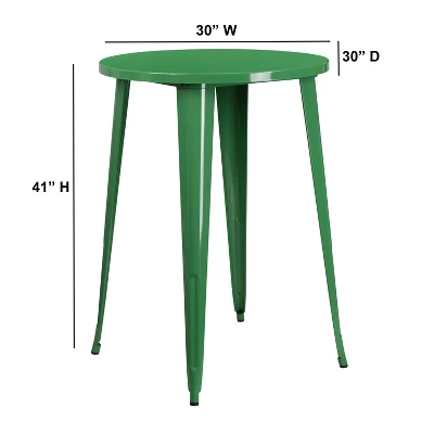 Create a chic dining space with this industrial style table. The colorful table will add a retro-modern look to your home or eatery. This highly versatile Cafe Table is ideal for use in bistros, taverns, bars and restaurants. You can mix and match this style table with any metal chair, even using different colors. A thick brace underneath the top adds extra stability. The legs have protective rubber feet that prevent damage to flooring. This all-weather use table is great for indoor and outdoor settings. For longevity, care should be taken to protect from long periods of wet weather. The possibilities are endless with the multitude of environments in which you can use this table, for both commercial and residential spaces.