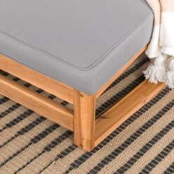 Relax under the warm summer sun in this gorgeous and comfortable outdoor open side chair and ottoman. Featuring soft cushions and durable yet stylish acacia wood, this is truly a winning combination. The angular design of both the chair and ottoman create a modern and contemporary style with classic and traditional elements, ideal for your patio.