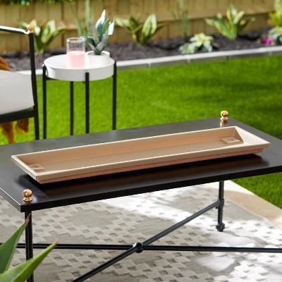 Keep your flower boxes looking nice even when rain or over-watering happening. The Venetian 30-Inch Rectangular Flower Box Saucer from HC Companies protects your porch, deck, or window sill from excess moisture.This rectangular flower pot saucer is designed to fit the 30-inch Venetian flower box and will accommodate similarly shaped pots and planters. Note: Saucer interior diameter measures 29.5-inches and width measures 6.75-inches. The plant saucer features ridging on the inside that elevates your flower pot, allowing for moisture to drip. The high sides then keeps moisture contained. Easily drain excess water with the removable drain plugs.This flower pot saucer is perfect for inside and outside the home. It’s classic styling goes with any indoor decor, from farmhouse to modern. The plastic plant saucer is also designed to stand up to wear inside and out. Made with durable and lightweight plastic, this plant saucer resists wear, color fading, leaking, and cracking.
