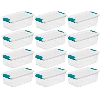 Instantly organize nearly any space in your home, office, or classroom with this 12-pack of Sterilite Plastic 6-Quart Storage Box Containers with Latching Lids.Designed to be modular, you can create your own storage system for items that can be difficult to sort and store. With indexed lids, these containers can be stacked on top of each other, allowing for the efficient use of vertical storage space and keeping workspaces and living areas open and clean.Durable and stylish, these bins are a great solution for storing and organizing items throughout your home and office, such as art supplies, pictures, shoes, gloves, school supplies, and more. The clear base and lid allow contents to be easily identified from any angle, and the color accent latches ensure that the lid remains secure to the base.De-clutter your space and create your ideal storage system with the 12-pack of Plastic Storage Box Containers from Sterilite.