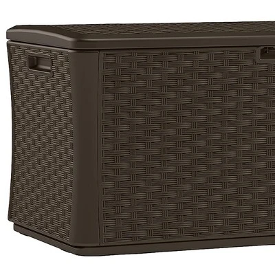 Revolutionize your outdoor living space with the Suncast 134 Gallon Extra Large Herringbone Deck Box. Say goodbye to clutter and welcome a new era of organization and style. Designed to surpass your storage needs, this extraordinary deck box offers an impressive 134-gallon capacity to hold all your outdoor essentials in one convenient place. Whether patio cushions, gardening tools, or pool supplies, this deck box has room for it all.It’s not just about practicality; the Java finish adds a touch of elegance that will elevate your outdoor decor to new heights. The sleek and sophisticated design seamlessly blends with any patio or deck setting, making this storage container a standout piece.Built to withstand the harshest elements, this deck box is crafted with top-quality materials, ensuring long-lasting durability and protection for your belongings. And with a lockable lid, you can have peace of mind knowing that your items are secure.Upgrade your outdoor space with the Suncast 134 Gallon Extra Large Herringbone Deck Box, where functionality meets style. Experience the difference of a clutter-free and visually stunning environment today.