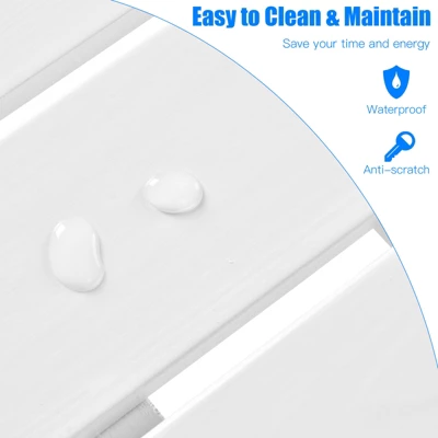 This outdoor round side table is made of solid fir wood, which is sturdy enough to withstand outdoor environment. With durable screws and stable cruciform structure, patio side table van support up to 44lbs. The tabletop with unique slatted design has exquisite polishing technology, making the surface smooth and preventing you from getting injured. Equipped with clear instruction and necessary accessories, the side table is easy to assemble.